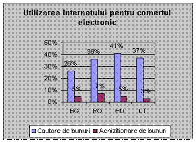 Intr-un sondaj publicat in Raportul pentru Europa pe anul 2004 s-a constatat ca : in tarile est-europene (Bulgaria, Romania, Ungaria, Lituania) cei care navigheaza pe site-uri ce ofera servicii de comert electronic o fac pentru a se interesa de anumite produse si prea putin pentru achizitionarea de produse.
