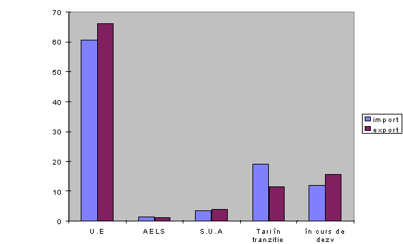 Una din caracteristicile esentiale ale schimburilor comerciale ale României în aceasta perioada consta în reorientarea acestora cu precadere spre piata europeana si cu deosebire spre cea a Uniunii Europene.