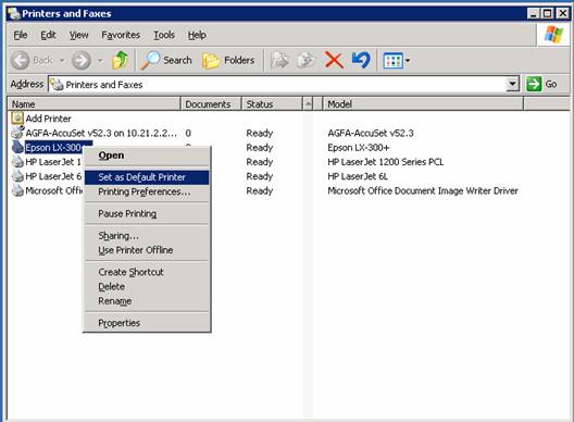 Imprimanta epson trebuie setata ca default pe PC-ul CRM.