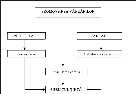 Promovarea vânzarilor. Ansamblu de activitati, îndreptate catre intermediari, vânzatori sau consumatori, în scopul stimularii cresterii vânzarilor, pe termen scurt.