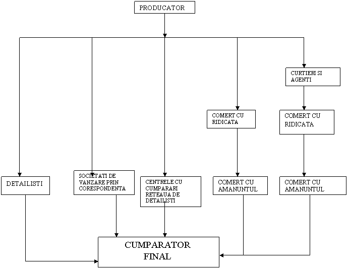 De mentionat faptul ca un producator poate urma diverse circuite pentru a ajunge la destinatarul sau. Sunt insa situatii in care datorita naturii , in special cand e vorba de cele agricole, circuitul comercial trebuie sa capete o mare complexitate, antrenand numerosi intermediari si multiple mutatii de produse in cadrul fluxului producator-consumator.