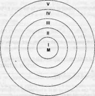 Pentru un supermagazin ce va fi amplasat intr-un cartier rezidential dintr-o localitate, când caile de acces sunt comode, se utilizeaza o harta geografica pe care se traseaza, luând drept centru punctul "M" unde va fi construit magazinul, cercuri concentrice ale caror raze corespund urmatoarelor distante: I = 200 m, II = 500 m, III = 1 km, IV = 2 km, V = peste 4 km