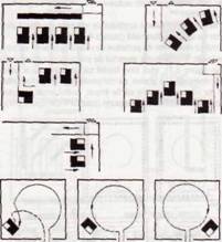 etalarea pe orizontala a produselor grele sau cu volum mare, linia orizontala întrerupându-se prin pauze de decor pentru a evita monotonia;