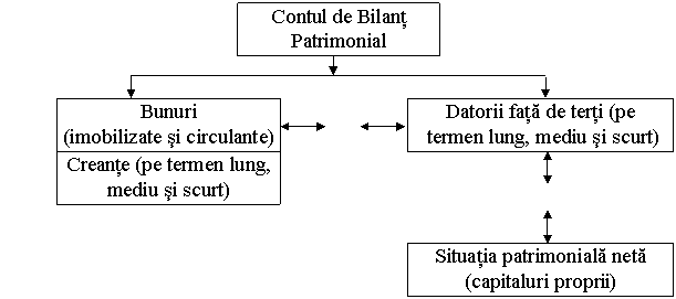 Patrimoniul se sistematizeaza prin bilant. Bilantul unitatilor patrimoniale care desfasoara activitati economice cuprinde toate elementele de activ si de pasiv grupate dupa destinatie si, respectiv, provenienta lor.