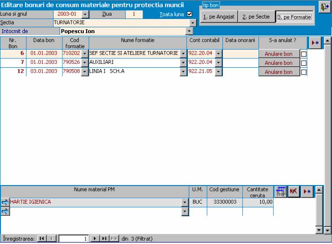 5.3. Macheta "EDITARE BONURI DE MATERIALE PENTRU PROTECŢIA MUNCII"