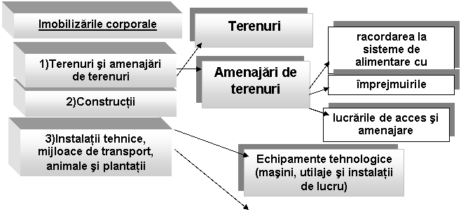 Īn structura imobilizarilor corporale se identifica doua mari grupe : terenurile si mijloacele fixe. Īn cadrul imobilizarilor corporale sunt evidentiate īn mod distinct imobilizarile corporale īn curs.
