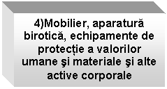 - mobilier, aparatura birotica, echipamente de protectie a valorilor umane si materiale si alte active corporale.