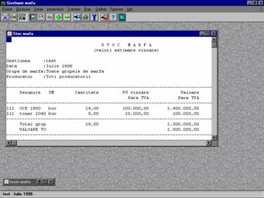 Dupa ce ati completat optiunile dumneavoastra, dati comanda "OK", iar programul cauta înregistrarile ce respecta aceste optiuni. Rezultatul cautarii va fi scris într-un raport ce apare pe monitor. În acest raport sunt prezentate în amanunt toate documentele înregistrate în perioada selectata si care contin valoarea completata de dumneavoastra în câmpul "Valoare cautata".