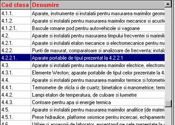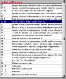 Lista intrarilor mijloacelor fixe (caracteristici).