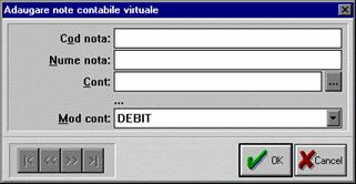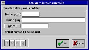 Introducerea datelor de pe documentele primare în jurnalul selectat se face cu comanda "Adaugare înregistrari" din meniul "Jurnale" sau cu tasta "+". Dupa aceasta comanda, pe monitor apare o fereastra de dialog ca în Figura 70.