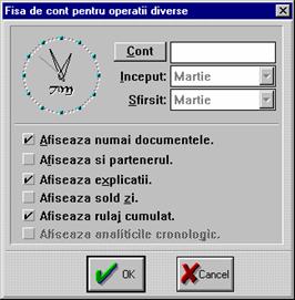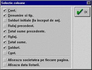 În partea de jos a ferestrei de dialog sunt optiuni de configurare a raportului. Aceste optiuni de configurare sunt selectate automat pentru ca raportul obtinut sa fie fisa contului. Prin modificarea optiunilor implicite puteti configura dupa necesitati raportul obtinut: