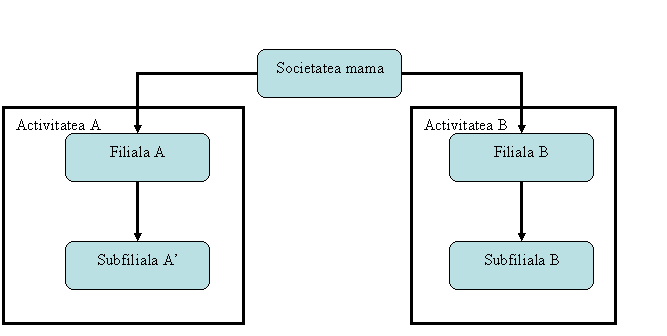 < Crearea unei societăti filiala; acesta este un mod de realizare indirectă a obiectului de activitate a societatii-mama, atunci când acesta coincide cu obiectul de activitate al societătii filiala.