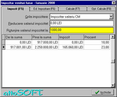 Una din informatiile care se modifica cel mai des in legislatia romaneasca a salarizarii o reprezinta impozitarul. In programul Personal - Salarizare aceasta informatie este usor de modificat, atunci cand este cazul. In mod curent, la trecerea de la o luna la alta programul copie impozitarul din luna anterioara, astfel incat sa nu fie nevoie sa fie definit in fiecare luna.