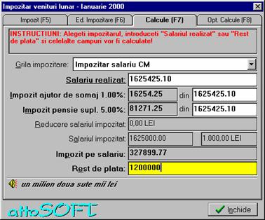 - calculul drepturilor salariale ale angajatilor, calculul taxelor de platit de catre angajat si angajator (plecand de la pontaje si sporuri sau invers, de la venitul net);