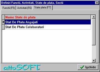 In cadrul anumitor rapoarte poate apare si functia unui angajat. De aceea este bine sa definiti si functiile angajatilor din cadrul unitatii, functie care va fi selectata pe fisa fiecarui angajat in parte.