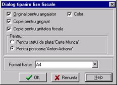 - redactarea fiselor fiscale ale angajatilor din cadrul unitatii, in conformitate cu Ordonanta privind Impozitul pe venit din M.O. nr. 419 / 31.08.1999.