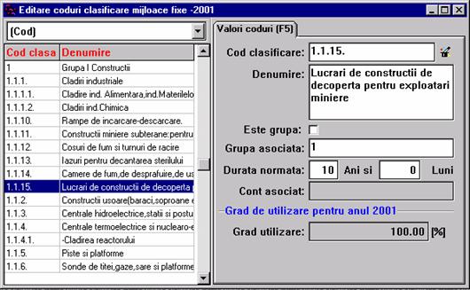 casuta de validare un anumit cod de clasificare. Odata selectat, in lista vor