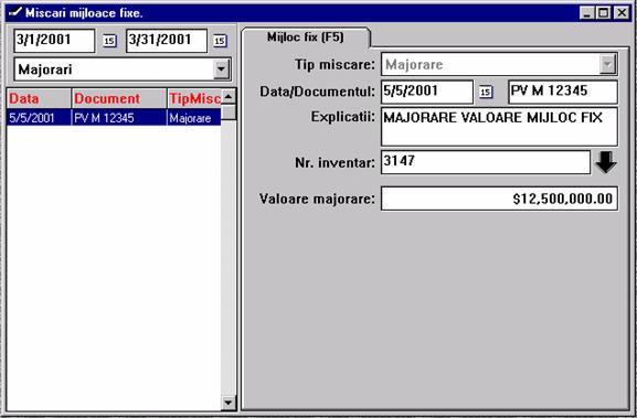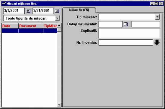 aici sunt listate toate mijloacele fixe care au deja un numar de inventar. Pentru a selecta un anumit mijloc fix, exista trei modalitati: