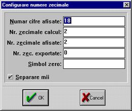 În câmpul "Nr. zecimale calcul" treceti numarul de zecimale ce va fi luat în calcul la efectuarea operatiunilor.