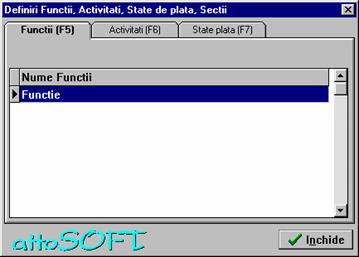 In cadrul anumitor rapoarte poate apare si functia unui angajat. De aceea este bine sa definiti si functiile angajatilor din cadrul unitatii, functie care va fi selectata pe fisa fiecarui angajat in parte.