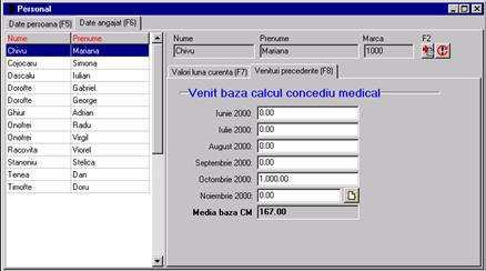 - evidenta datelor despre personalului angajat, inclusiv un istoric al tuturor operatiunilor realizate cu angajatii, de la inceperea lucrului cu acest program;