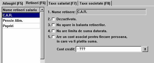 Retinerile reprezinta acele sume care se pot scade din salariul net, ele reprezentand debite (datorii) ale angajatului catre unitatea la care lucreaza (Popriri, Garantii materiale, Sindicat, C.A.R., etc) sau catre alte unitati (Chirii, Rate oprite de la unitate, etc)