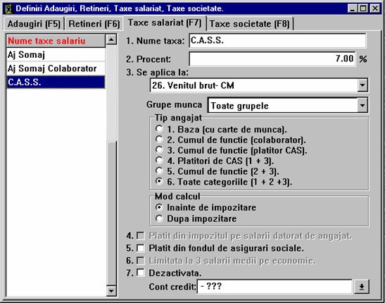 - coeficientii CAS si procentul din CAS platit de angajat;