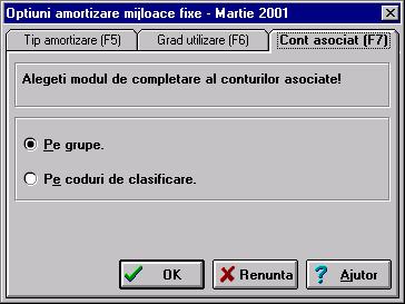 Daca va intereseaza ca in lista sa apara nu lista mijloacelor fixe dintr-o anumita gestiune, ci aceea a mijloacelor fixe dintr-o anumita clasa sau grupa de coduri, respectiv mijloacele fixe care sunt intr-o anumita stare (amortizat, conservat, etc), apasati butonul de deasupra raportului. Apare o lista cu variantele posibile : Gestiuni, Cod clasificare, Stare. Daca bifati Cod clasificare, veti putea selecta din casuta de validare un anumit cod de clasificare. Odata selectat, in lista vor apare numai mijloacele fixe din gestiunea dvs. cuprinse in acel cod (clasa, grupa, etc). Daca ati bifat Stare, in casuta de listare veti avea de selectat un tip de stare (Conservat, Amortizat, Exploatare, Iesit). Odata selectat unul din acestea, in lista vor apare numai mijloacele fixe care sunt in acea stare.