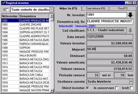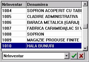 aici sunt listate toate mijloacele fixe care au deja un numar de inventar. Pentru a selecta un anumit mijloc fix, exista trei modalitati: