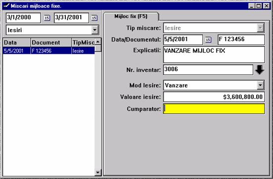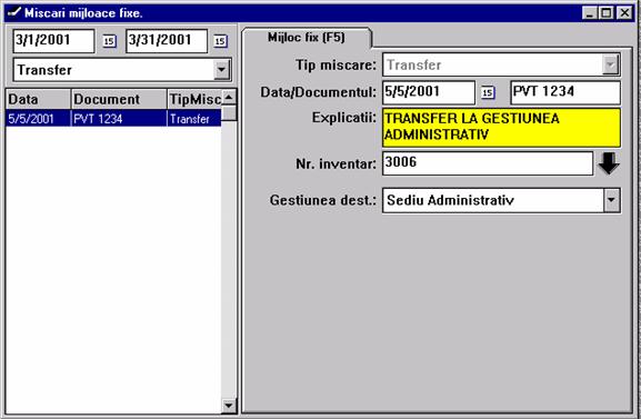 - Gestiunea si responsabilul la care este inregistrat mijlocul fix;
