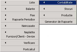 Comenzile prin care obtineti rapoartele sunt grupate în meniul "Rapoarte".