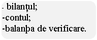 3) La inchiderea exercitiului: elementele patrimoniale se reflecta in bilant la valoarea de intrare in patrimoniu (valoarea contabila) pusa de acord cu rezultatele inventarierii:
