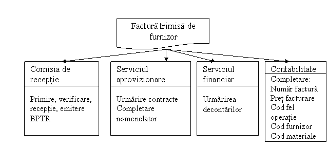 Facturile parcurg un circuit specific, trecând pe la serviciul financiar, unde sunt urmarite decontarile cu tertii, si pe la serviciul contabilitate, pentru a fi înregistrate si centralizate pe documentele contabile de evidenta, conform anexei 8.
