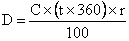 Daca se aplica dobânda simpla, relatia de calcul a dobânzii (D) este: