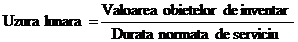 - procedeul calcularii lunare egale a uzurii obiectelor de inventar pe baza formulei: