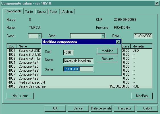 7. Butoanele care au aceeasi denumire au aceeasi functie, indiferent de fereastra in care le gasiti. De exemplu, in fereastra de Management de Personal, butonul COMPONENTE are acelari rol ca si optiunea COMPONENTE pe care o gasiti in fereastra programului - meniul principal.