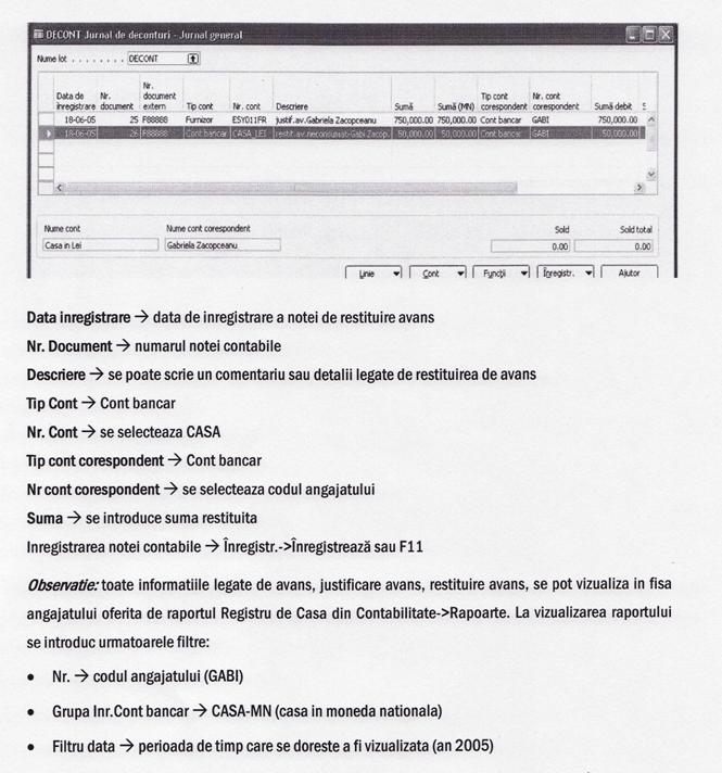 In sistemul informatic Navision, avansurile de trezorerie sunt asimilate conturilor bancare si se deschide cate o fisa cont bancar pentru fiecare salariat.Pentru detalii vedeti anexa