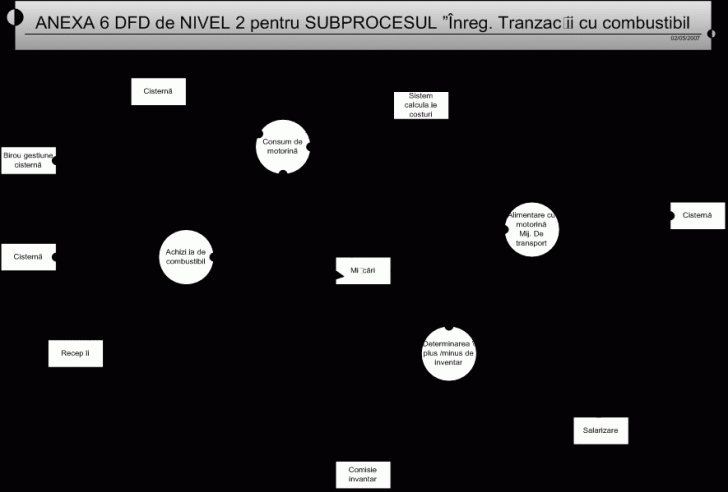 In procesul de modelare a proceselor am plcat de la diagrama descompunerii func ionale i de la descrierea orientata pe tranzac ii/transformari a sistemului de gestiune a stocurilor de motorina.