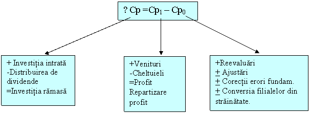 Variatia capitalului propriu (Δ Cp), unde Cp1-reprezinta capitalul propriu la sfârsitul exercitiului financiar, iar Cp0-capitalul propriu la începutul exercitiului, poate fi prezentata schematic astfel: