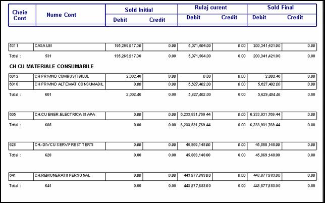 Iata cum va apare o balanta de verificare partiala, in functie de codurile sintetice ale conturilor: