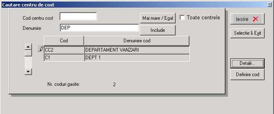 Cod cost = situat in partea de jos a ecranului = tipul de cheltuiala. Se selecteaza cu tasta F7.