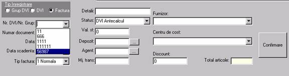 alegere numarului de DVI la care se anexeaza documentul curent. Factura nu poate fi creata fara un document de grad superior (DVI ).