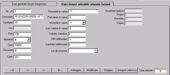 aferente facturii" avem posibilitatea de a introduce articolele cu toate