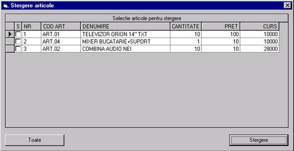 In cazul in care vreti sa modificati cantitatile preluate din WizCount alegeti butonul Stergere selctiva