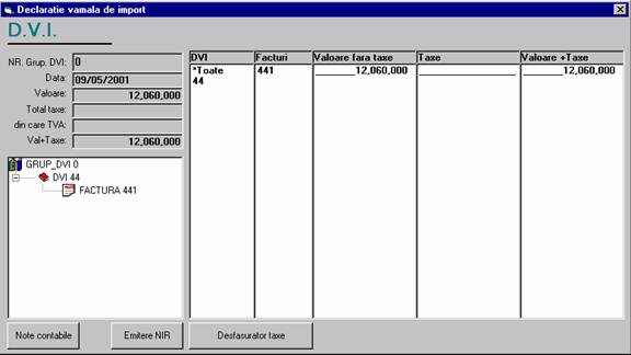 Constituirea unui Grup de DVI (optional).Se defineste numai in cazurile in care exista sume de repartizat pe doua sau mai multe declaratii vamale de implort;