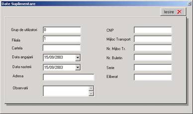 Utilizatori: Permite definirea de noi utilizatori si modificarea autorizatiilor de acces pentru acestia.