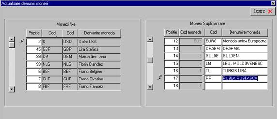 Cursuri valutare: In aceasta rubrica se introduc cursurile valutare pentru monedele straine.