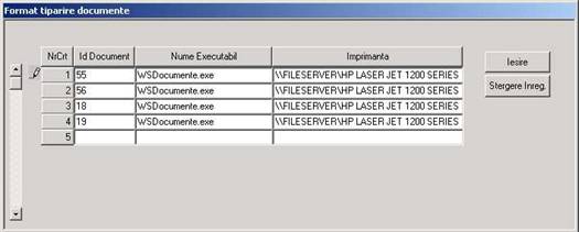 Tiparire Documente: Permite alegerea imprimantei cu care se va tipari fiecare tip de document.