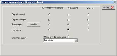 Pot fi setate mesaje de atentionare sau chiar blocare a utilizatorilor care realizeaza o operatie nepermisa (Optiuni suplimentare / Setare mesaje de atentionare):