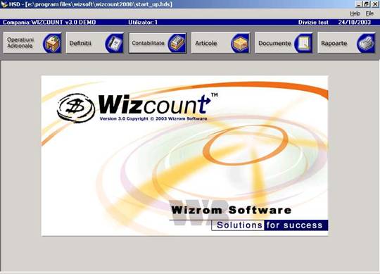 La intrarea in WizCount2000 va apare urmatorul ecran, ce contine sase meniuri principale: